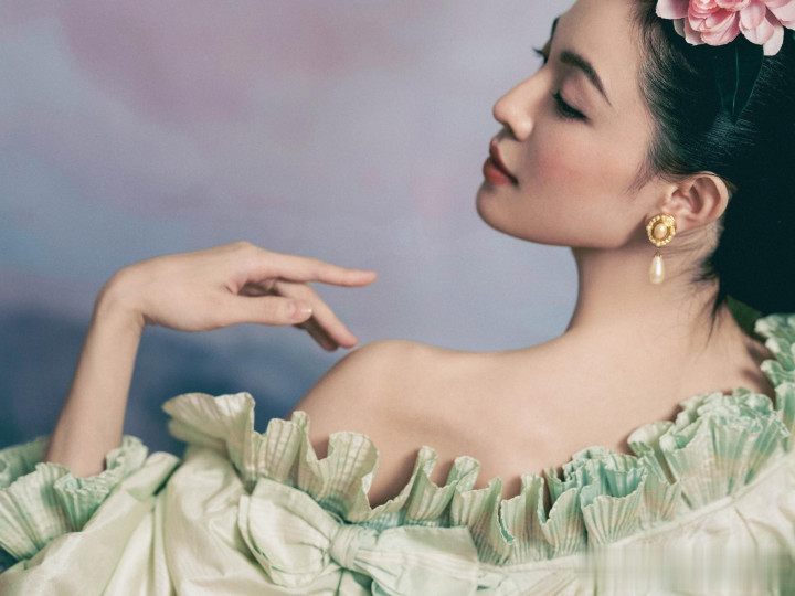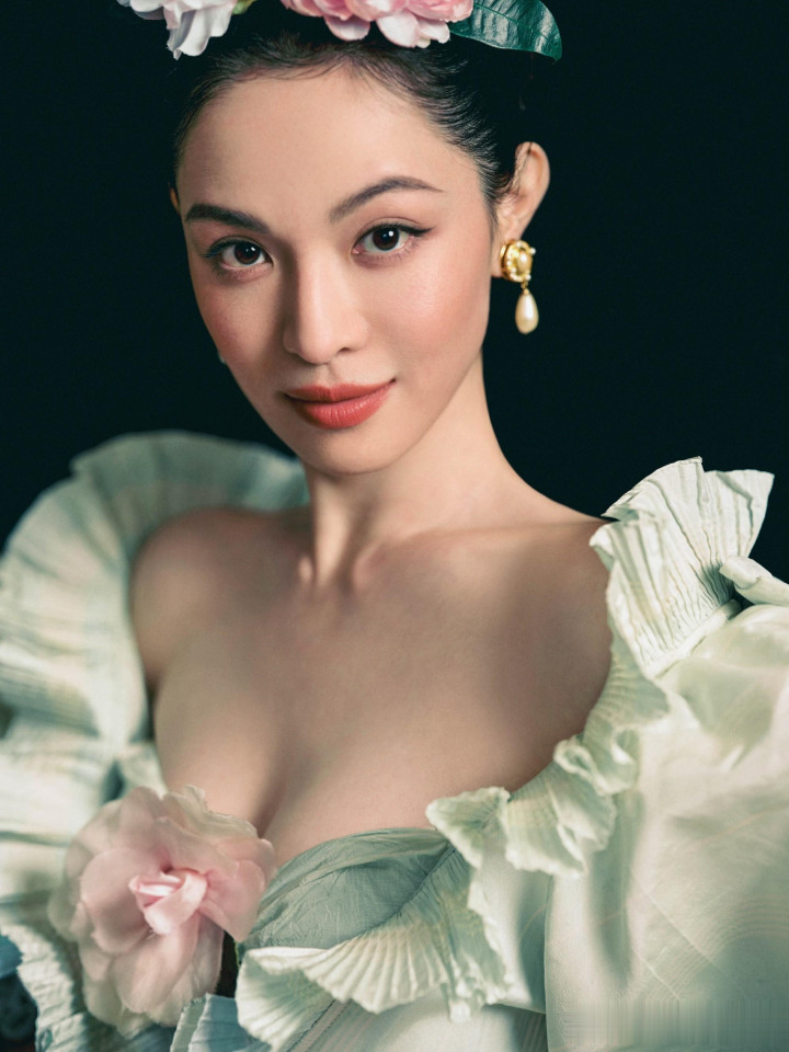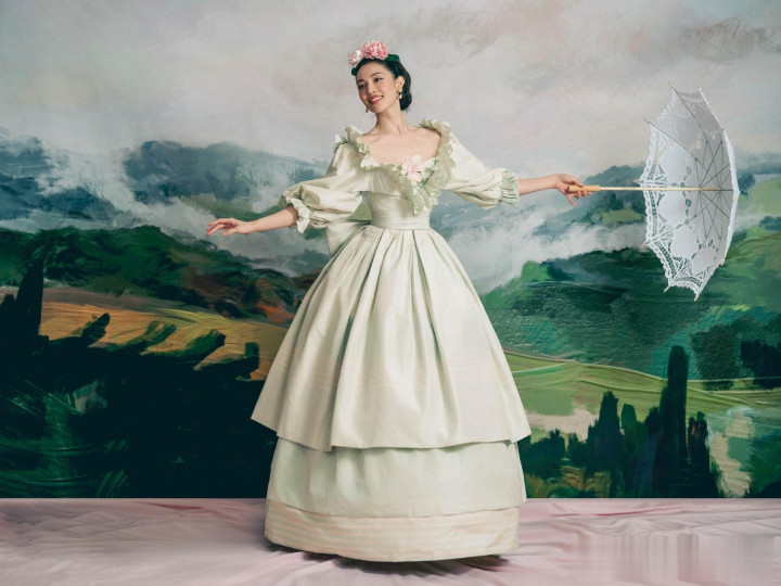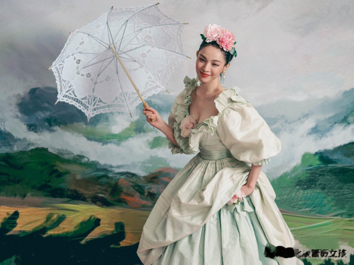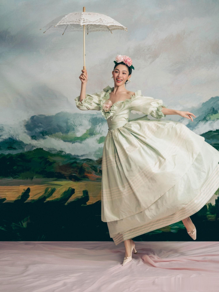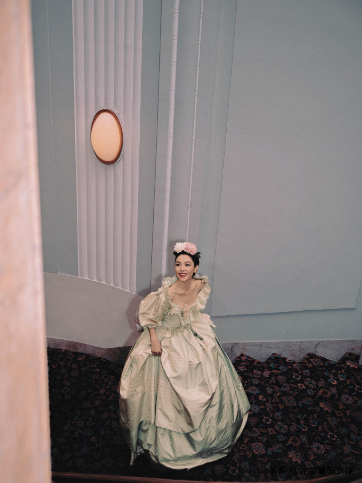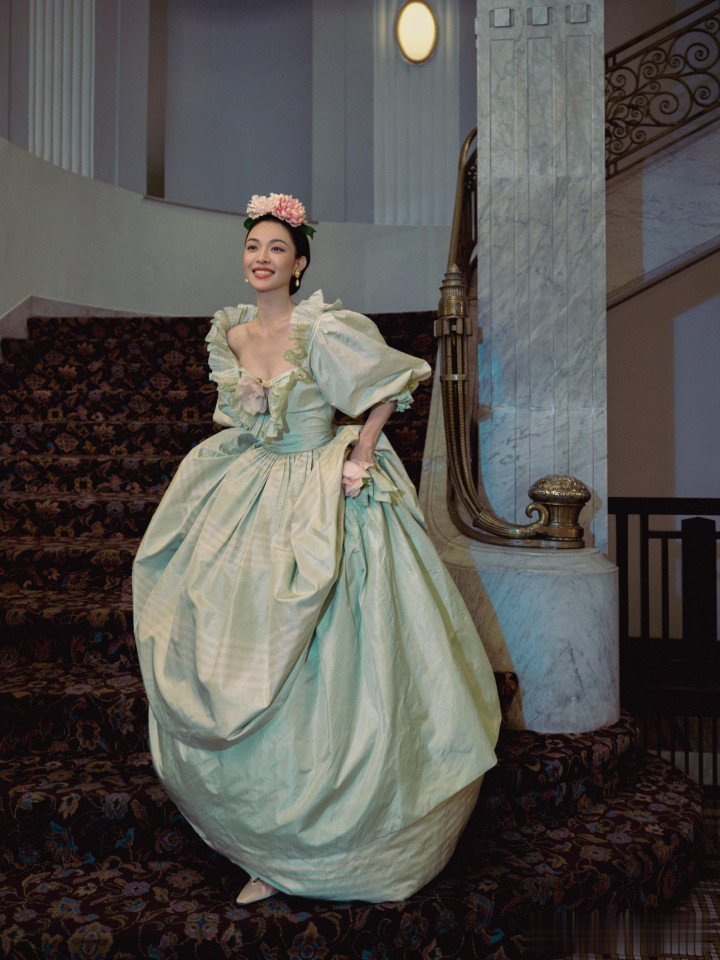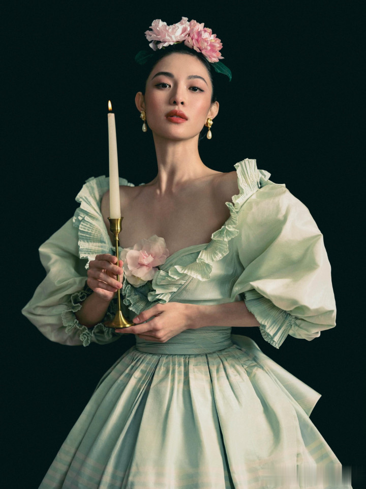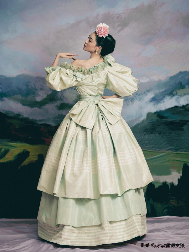 > 钟楚曦复古绿裙, VOGUE盛会演绎油画氛围感