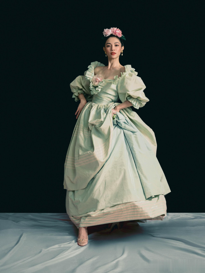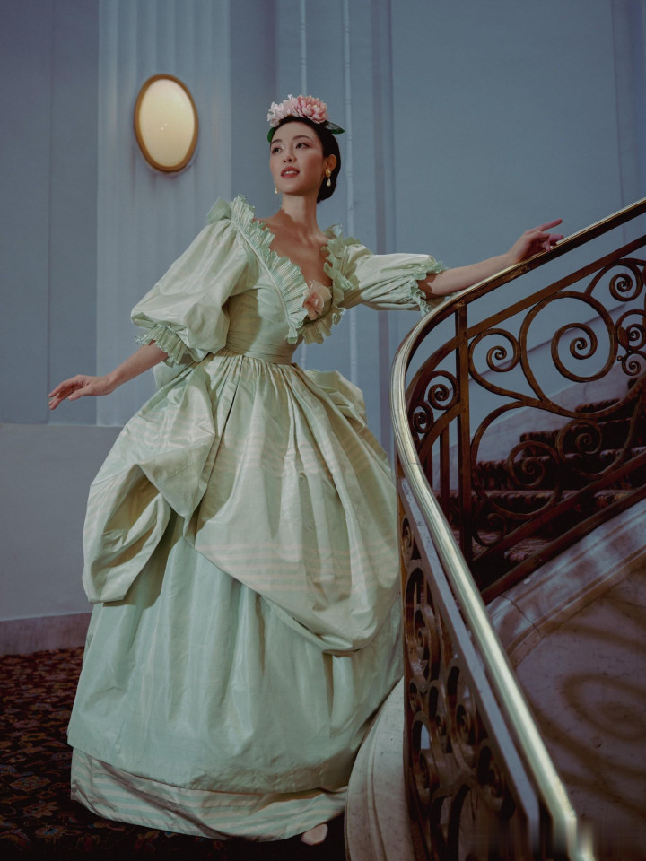 钟楚曦复古绿裙, VOGUE盛会演绎油画氛围感